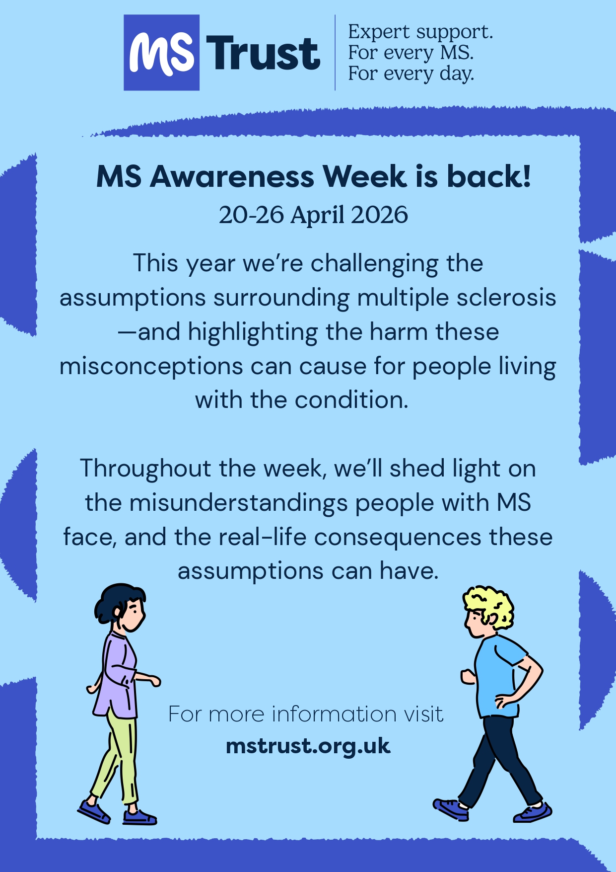 This MS Awareness Week, we’re challenging the assumptions surrounding multiple sclerosis—and highlighting the harm these misconceptions can cause for people living with the condition. To better understand the real experiences behind these assumptions, we surveyed the MS community, gathering insights that have helped shape and strengthen this campaign. Throughout the week, we’ll be sharing personal stories, information and resources that shed light on the misunderstandings people with MS face, and the real-life consequences these assumptions can have.